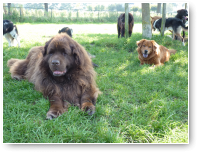 Het is een heerlijke roedel momenteel. De sfeer is heel vredig en ze zijn allemaal erg lief, ik kan niet anders zeggen. Ook met Milou, die in het begin weleens over het hek probeerde te springen, gaat het uitstekend. De 'stevige' Labradors Max en Max zie je gewoon een jasje uitdoen. Er ontstaat weer een taille en vooral bij Blonde Max zie je opeens wat ruim vel ontstaan, haha. Nog even en ze gaan afgetraind naar huis. Ze hebben het in ieder geval prima naar hun zin en dat is natuurlijk het belangrijkste. Bejaarde Dusty gaat steeds in een diepe kuil liggen slapen. Vandaag liep het blinde oudje Dana de Cocker Spaniel voorbij en viel per ongeluk in dezelfde kuil. Even was er paniek bij beide honden, er was me een gespartel van 8 poten in de lucht, maar we stonden ernaast en konden ze meteen helpen om vervolgens in schaterlachen uit te barsten...wat was dat een grappig gezicht!