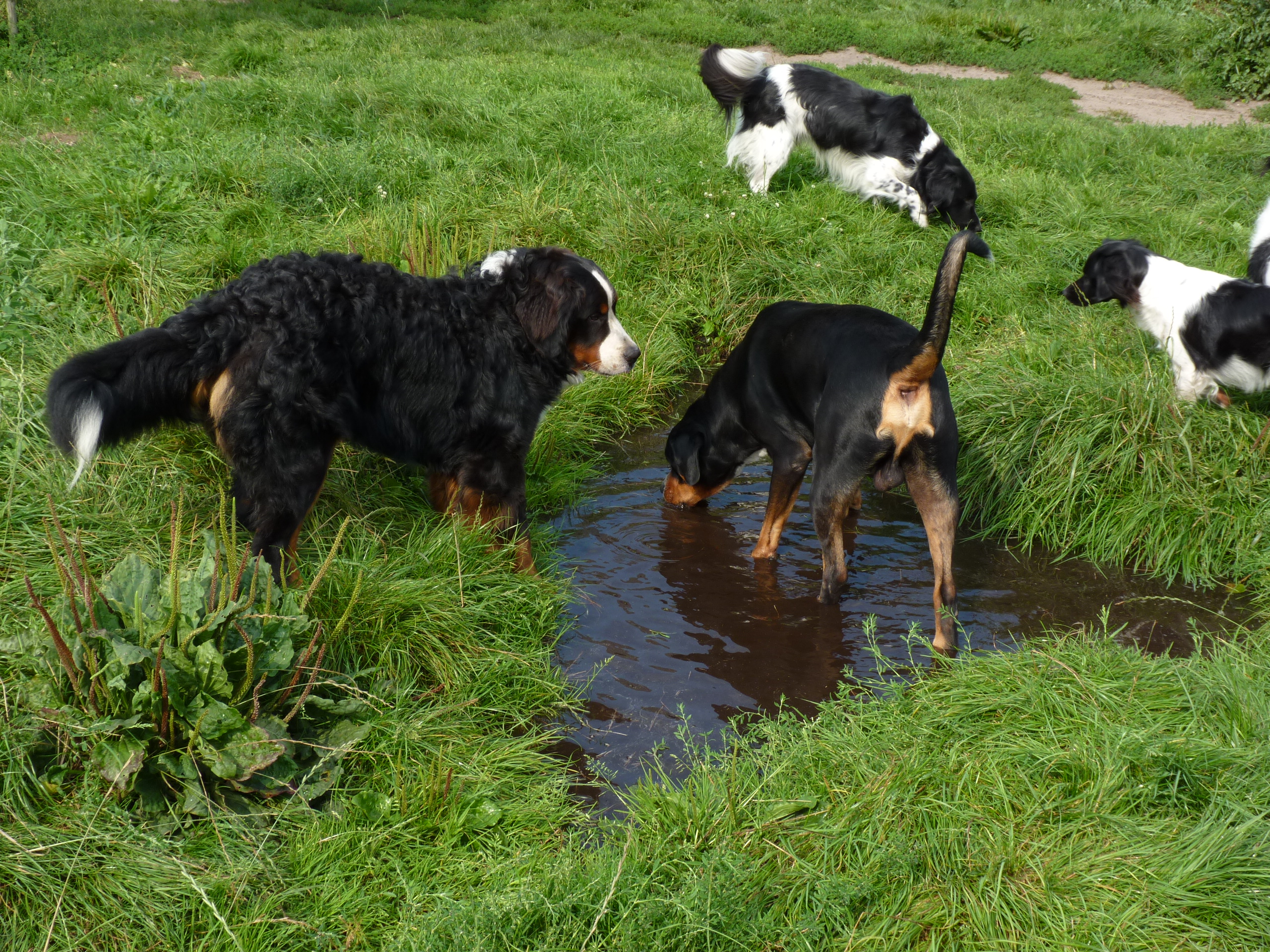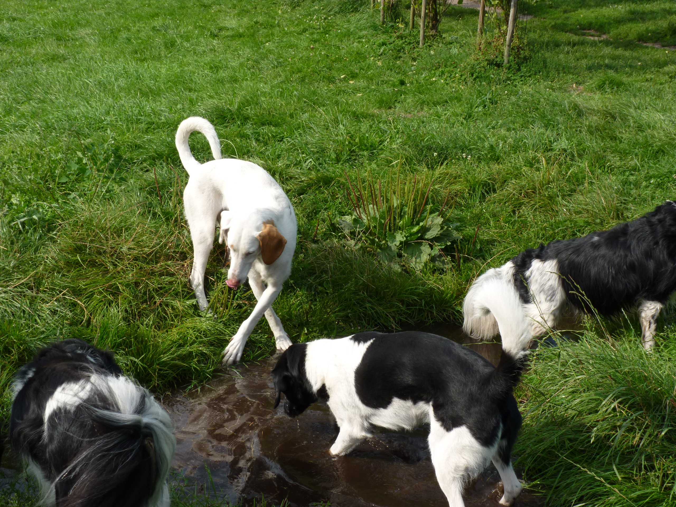 Het was een prachtige dag. Vanmiddag hebben we de kuil laten vollopen met water, dat vonden ze heerlijk. Rick en ik zijn tegelijk de wei ingegaan, hij met de filmcamera en ik met de fotocamera. We willen wat leuke beelden verzamelen voor ons 'bedrijfs'filmpje. We gaan niet alles gebruiken maar vinden het wel leuk om het aan jullie te laten zien. Foto's zijn leuk maar bewegende beelden van je vakantievierende hond is toch helemaal grappig! Het is vandaag dus dubbelop, foto's en filmpje!