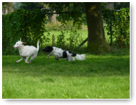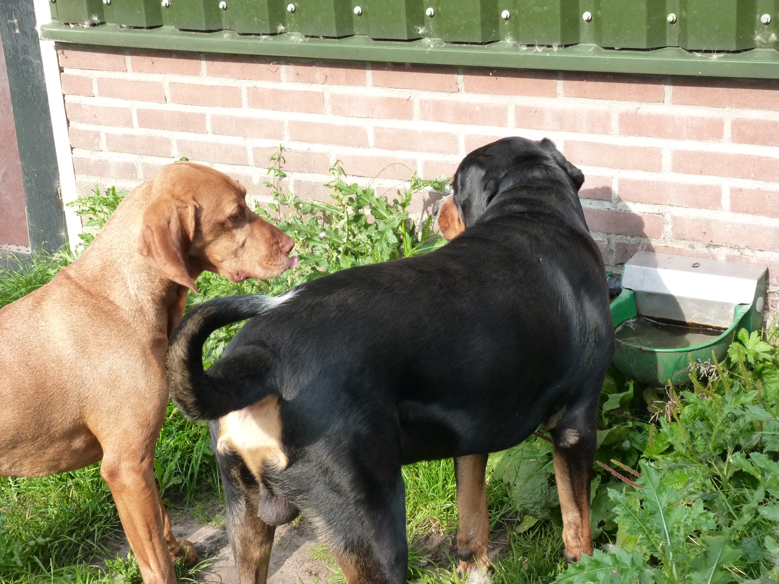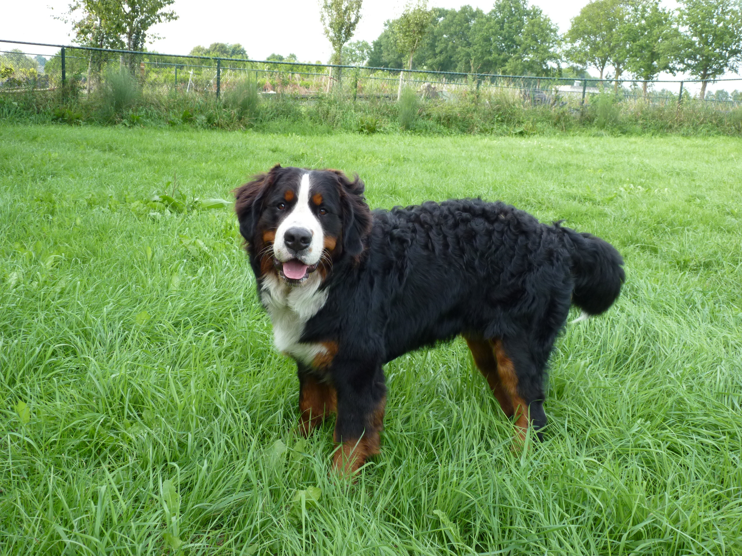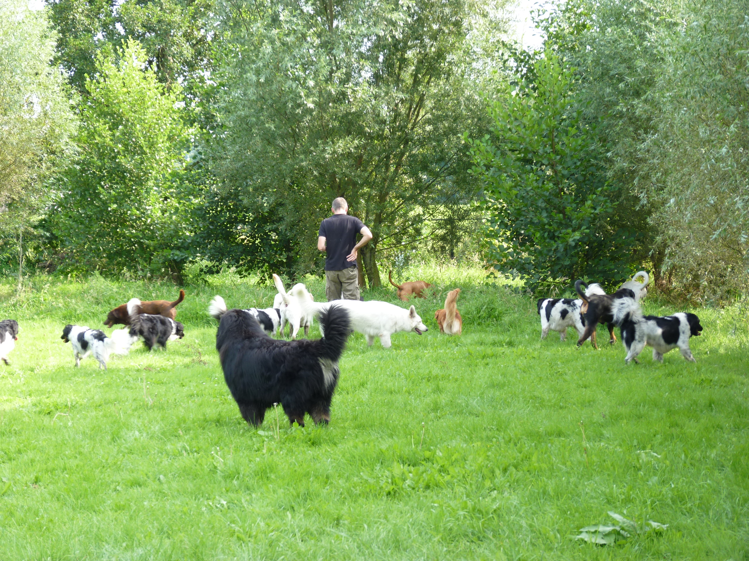 Het is nog steeds 'vol' en dat betekent dat er een flinke roedel loopt. Er logeren erg veel Friese Stabij's die graag samen optrekken. De Friese heren Roefke, Sybe en Jebbe hebben eerst een paar dagen vervelend om elkaar heen gedraaid, de grote vraag blijft wie van hen de baas mag zijn. Vandaag kwam Chef, de ongecastreerde Zwitserse Sennen binnen en de vraag bestond niet meer. Af en toe zoekt Chef de heren op om ze even intimiderend aan te staren en dan druipen ze af...ok...ok...jij bent 'm.