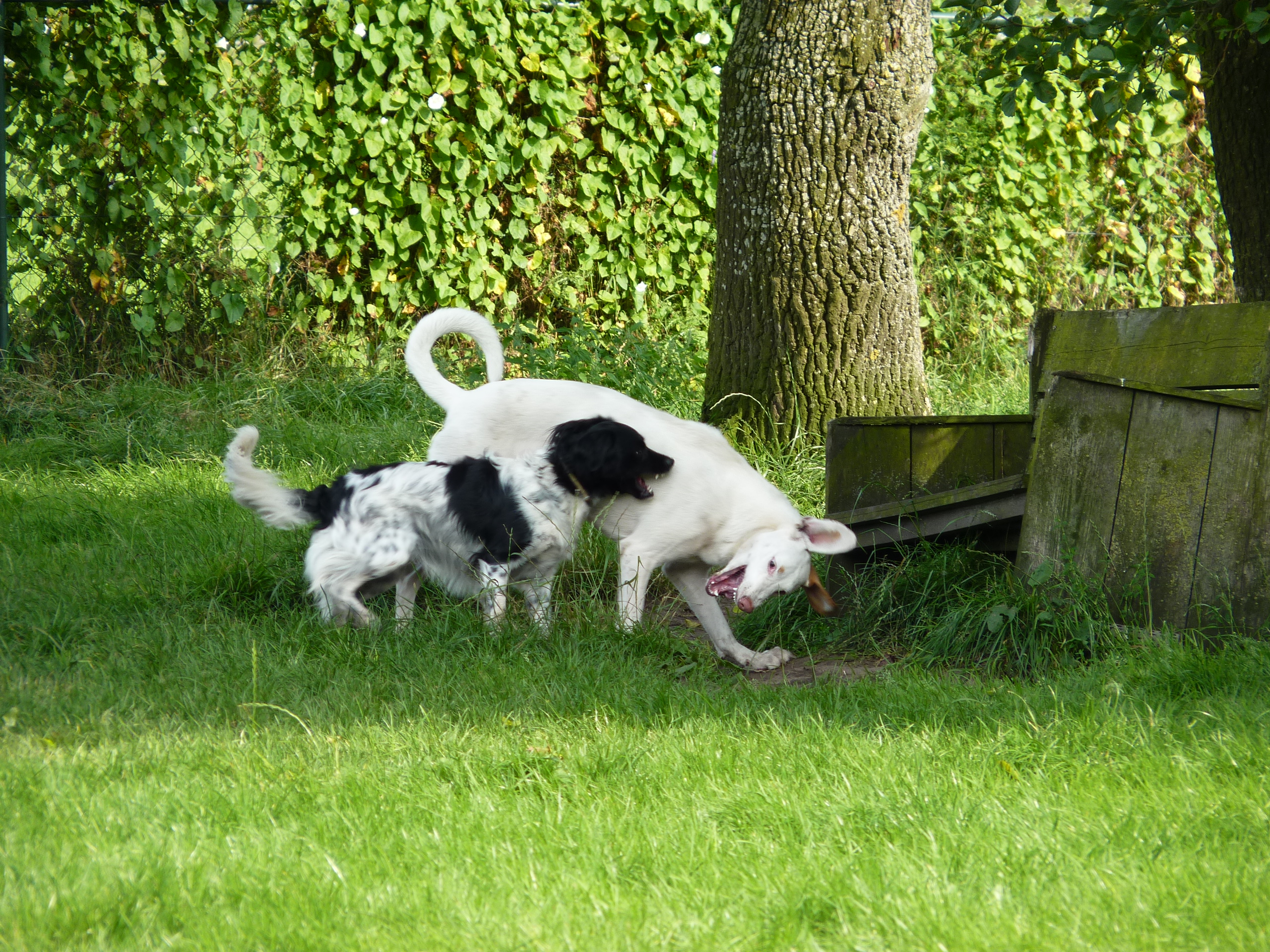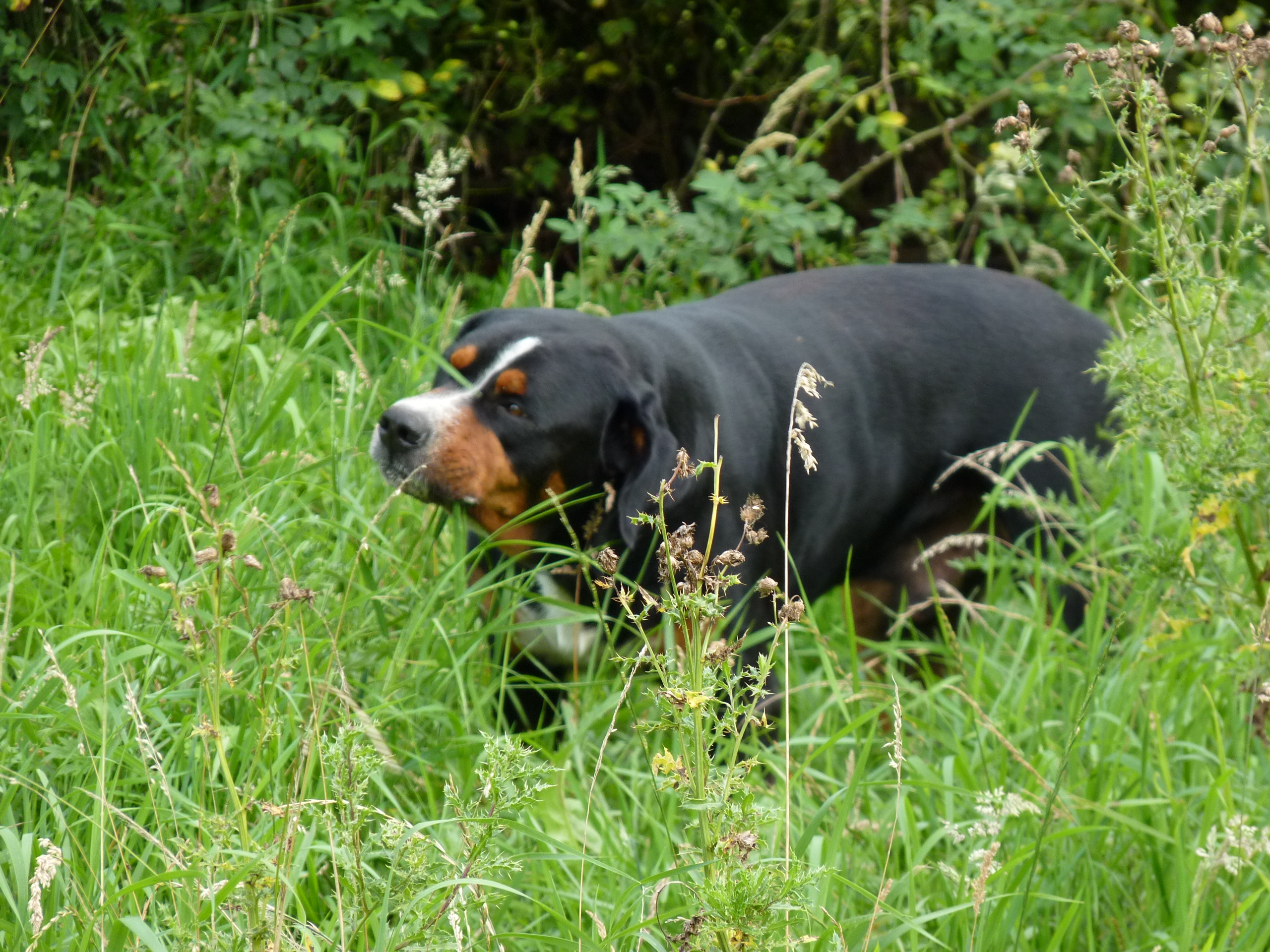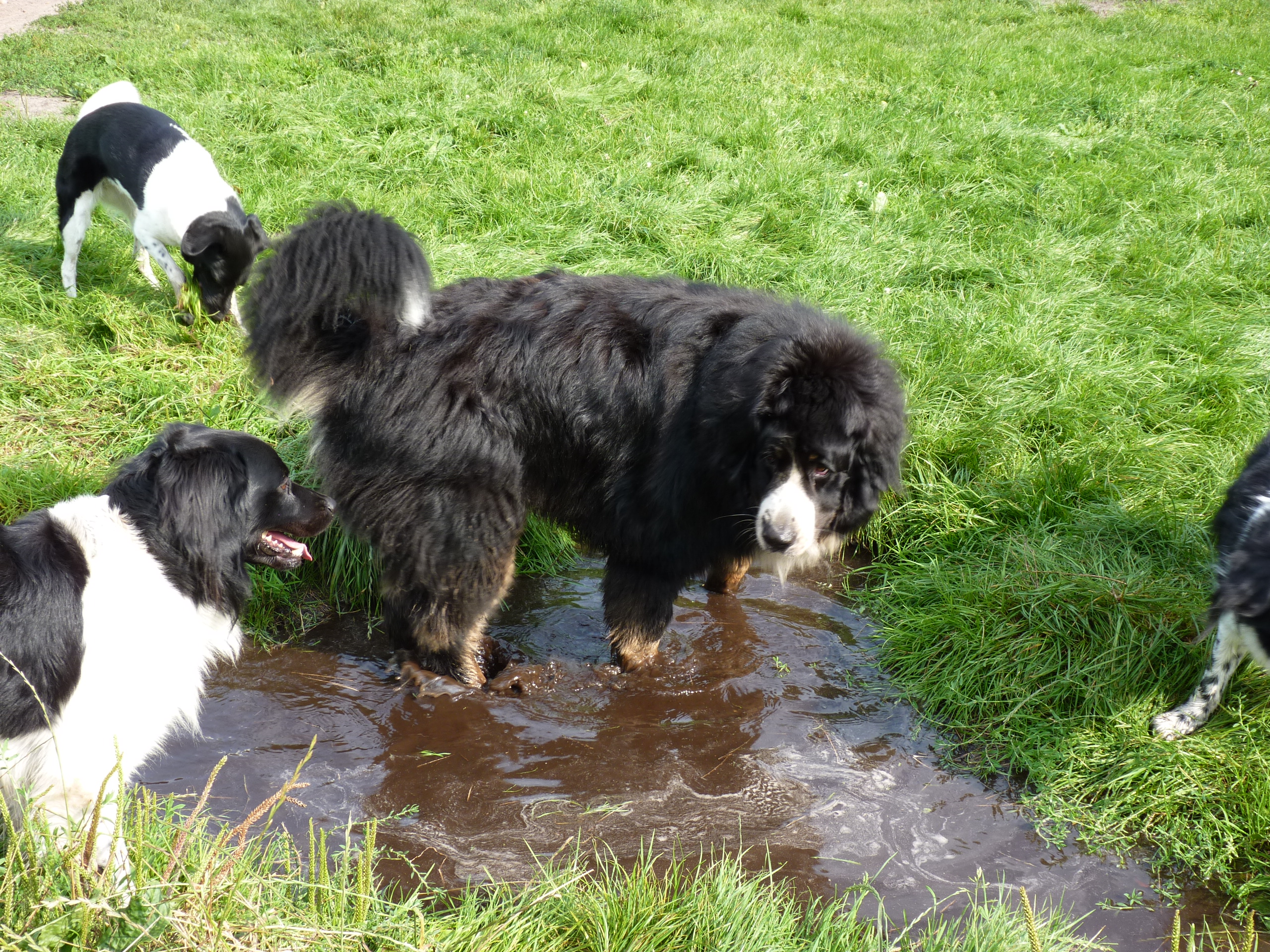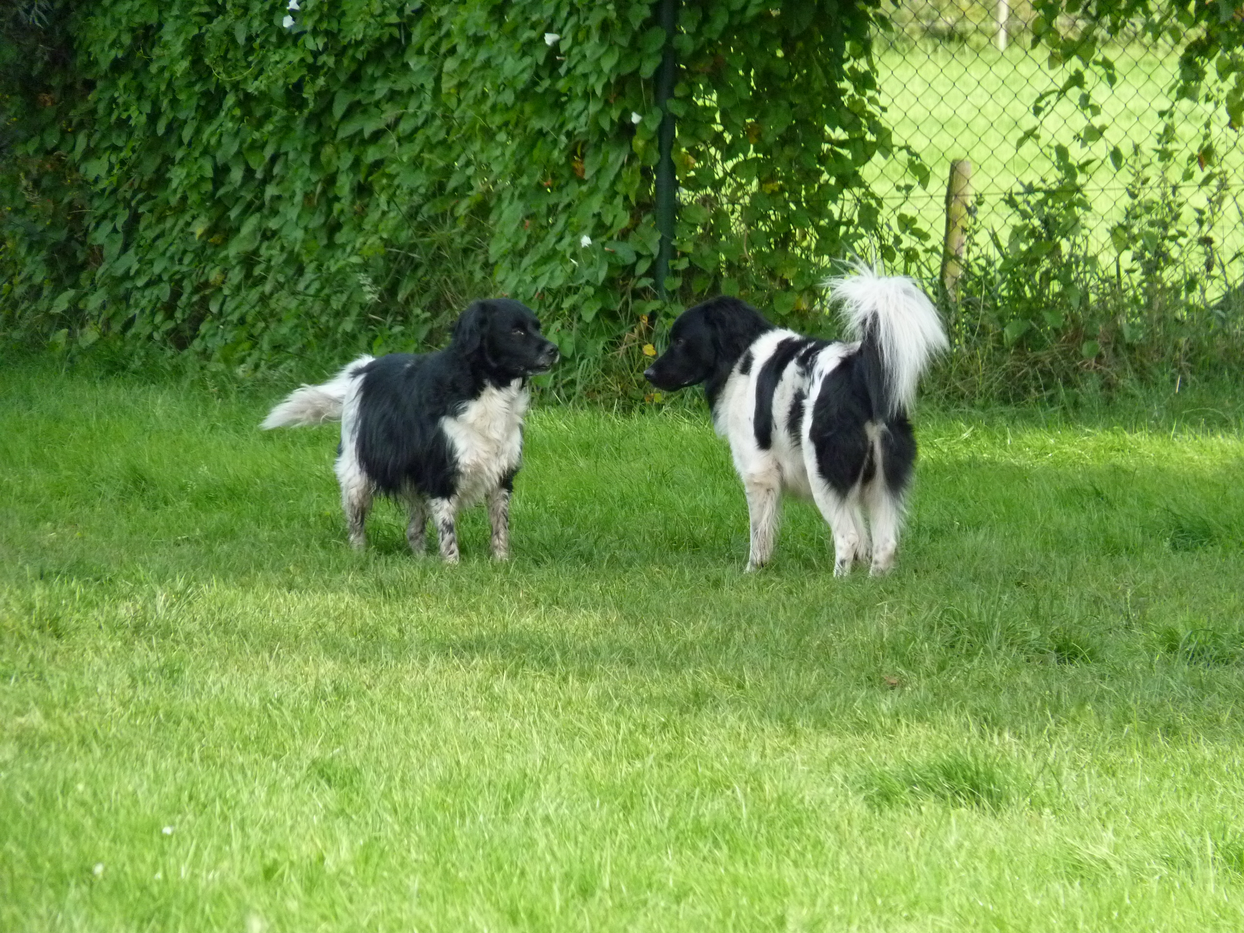 Het is nog steeds 'vol' en dat betekent dat er een flinke roedel loopt. Er logeren erg veel Friese Stabij's die graag samen optrekken. De Friese heren Roefke, Sybe en Jebbe hebben eerst een paar dagen vervelend om elkaar heen gedraaid, de grote vraag blijft wie van hen de baas mag zijn. Vandaag kwam Chef, de ongecastreerde Zwitserse Sennen binnen en de vraag bestond niet meer. Af en toe zoekt Chef de heren op om ze even intimiderend aan te staren en dan druipen ze af...ok...ok...jij bent 'm.