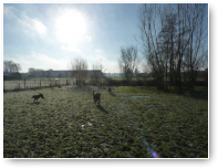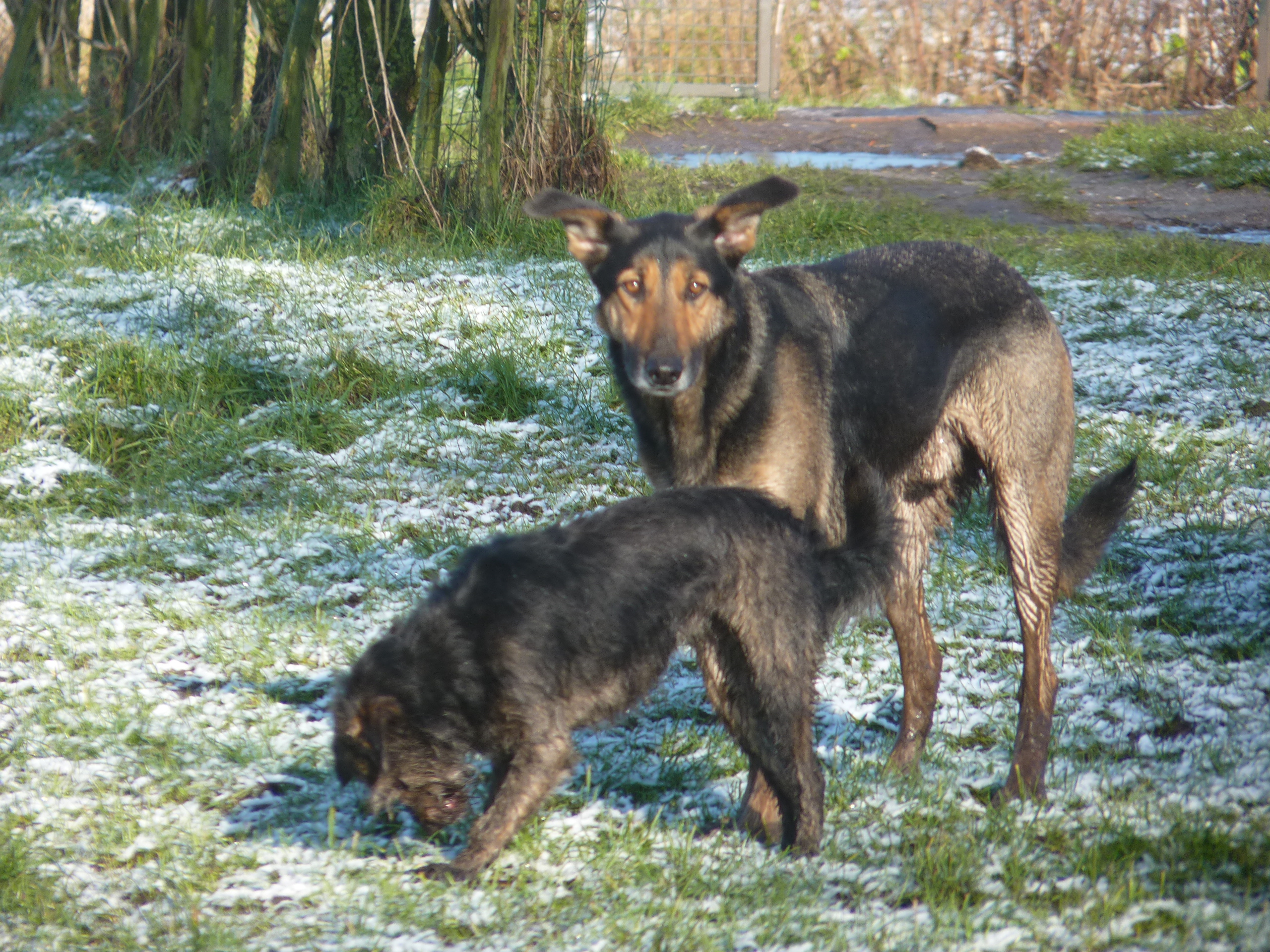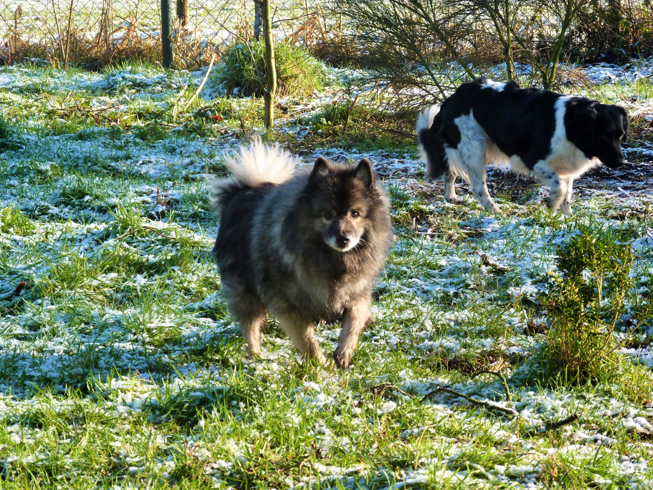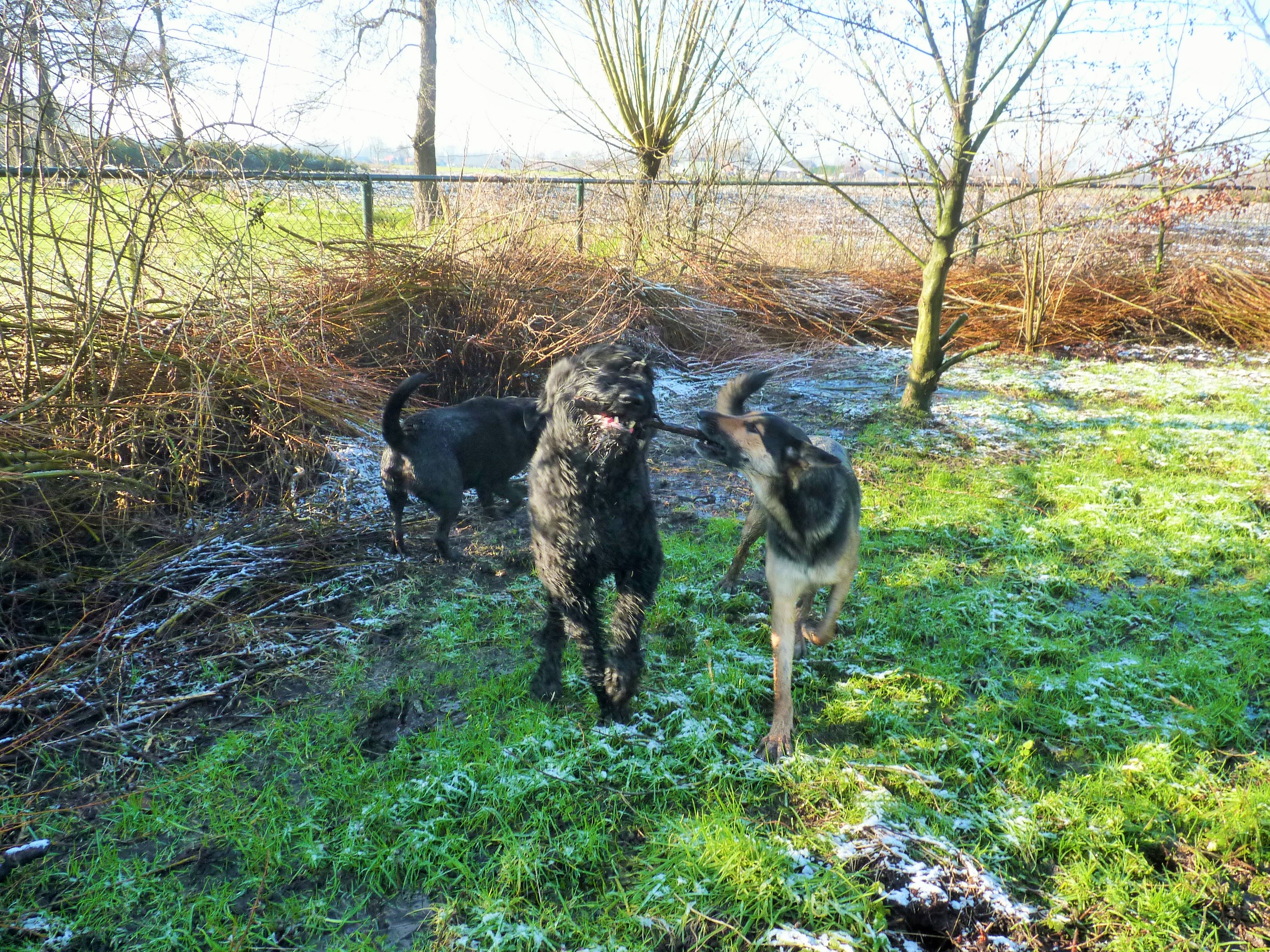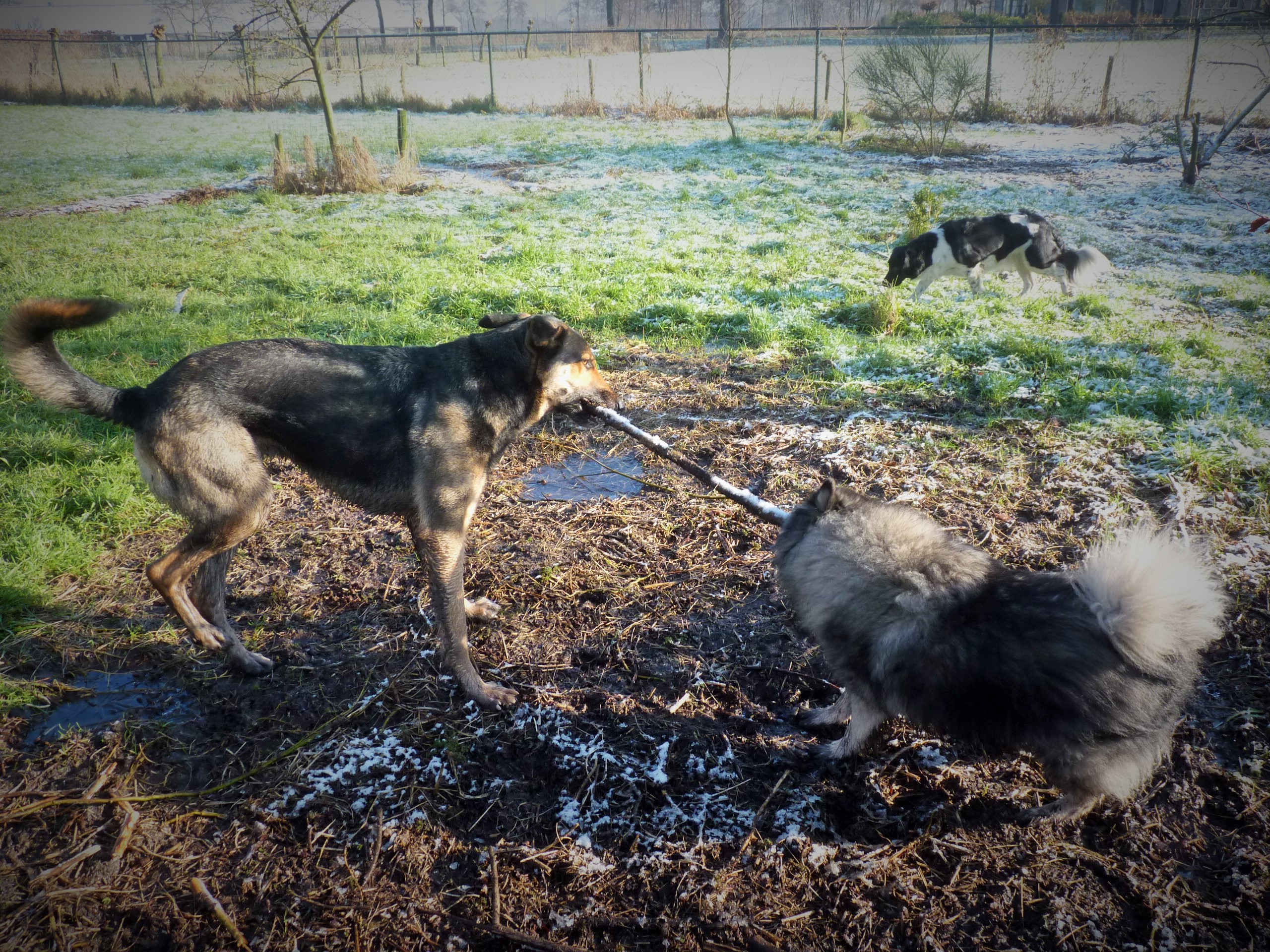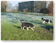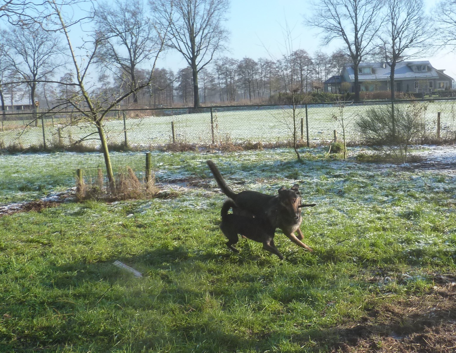 Na de vele regen van afgelopen week is een bevroren weiland ook weleens leuk. Er loopt een kleine, gezellige roedel. De logeergasten zijn Igor, Santi, Daisy,Snip, Molly, Aukje, Billy en Boy. Beagle Guus komt elke vrijdag gezellig meedoen. Het werd weer de hoogste tijd voor wat foto's. Ze zijn zoveel leuker met een zonnetje :-)