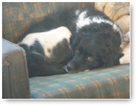 'snachts slapen ze in de bijkeuken op de vloerverwarming. Heerlijk om ze te zien uitrekken en wakker worden na een diepe nachtrust...zu kunnen er weer tegenaan!