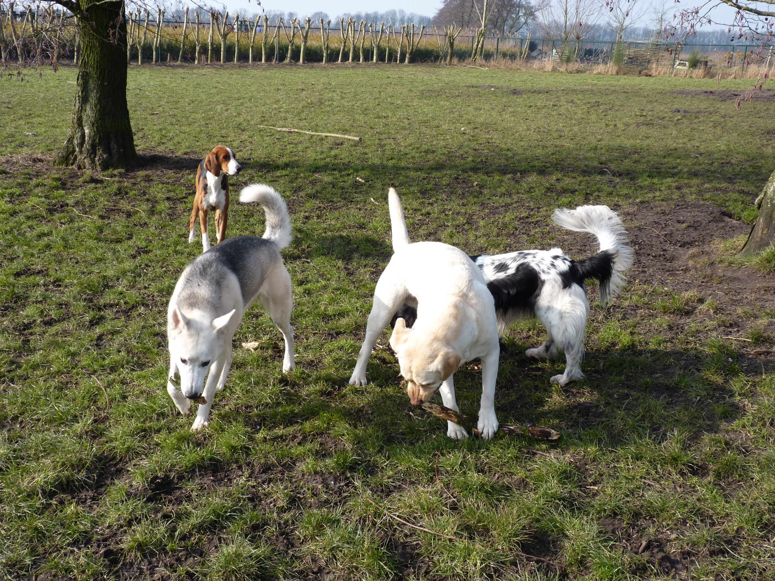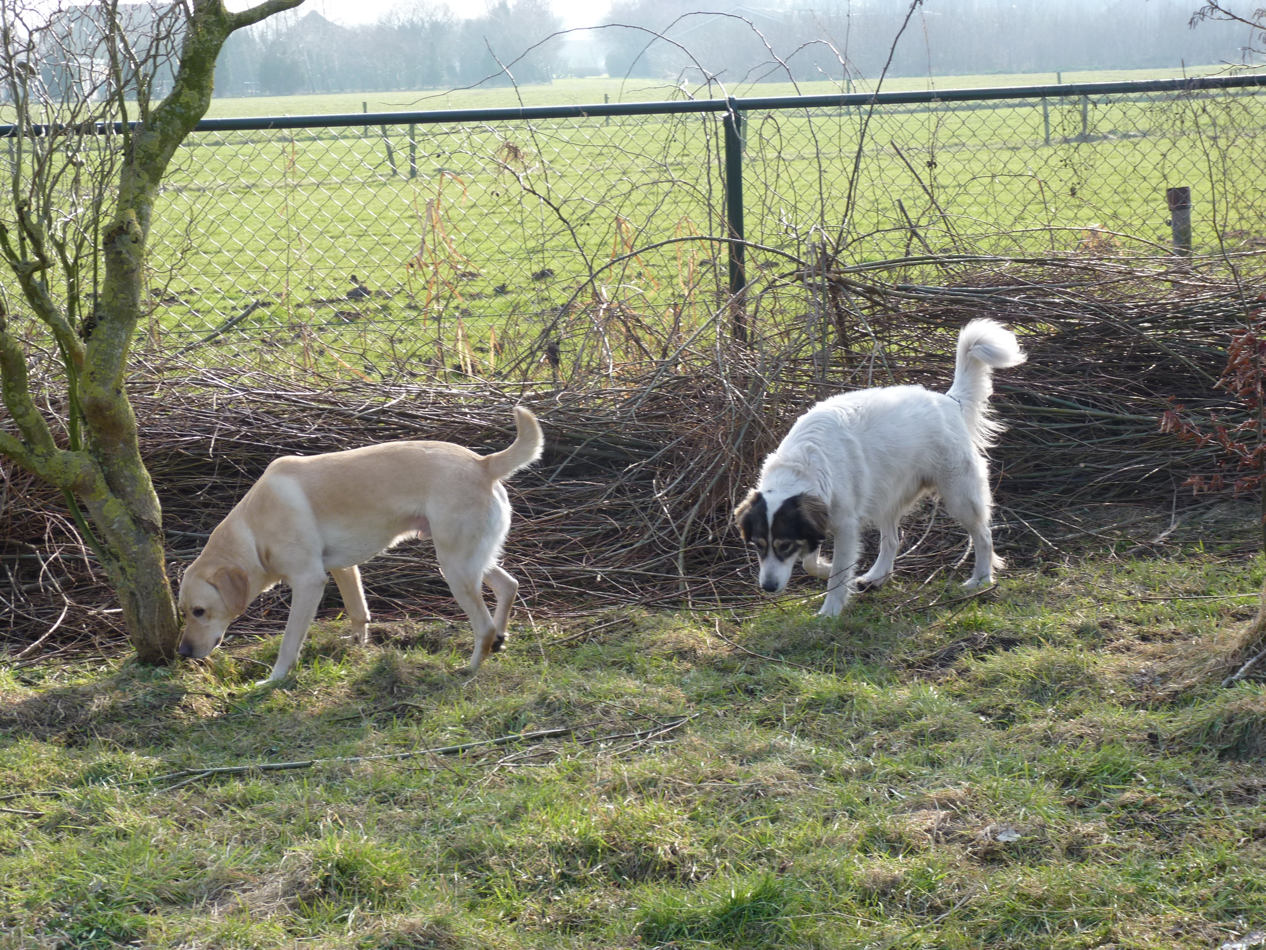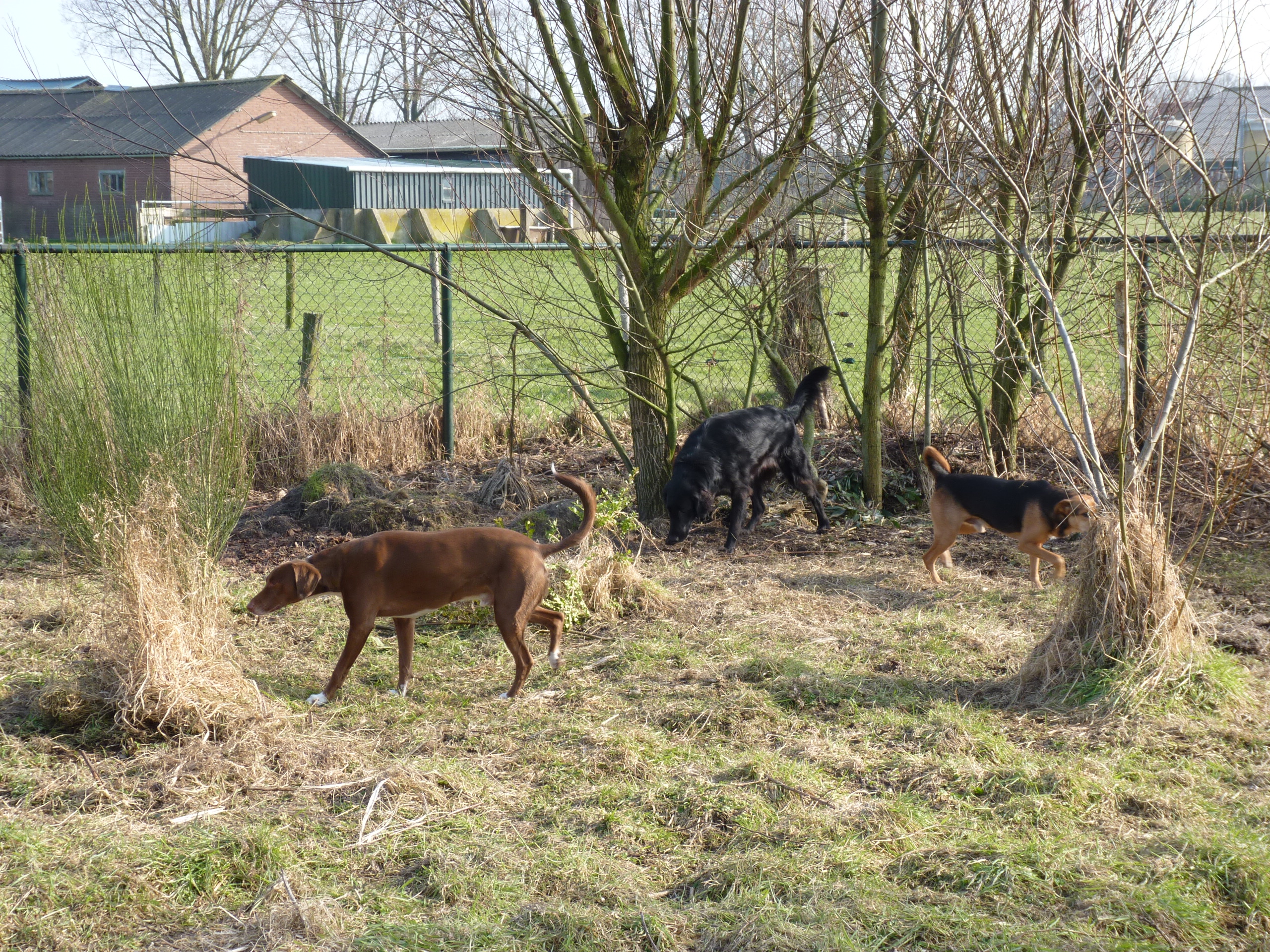 Heerlijk achterin rommelen in de tuinafvalhoek. Sam, Tica en Flint struinen samen.