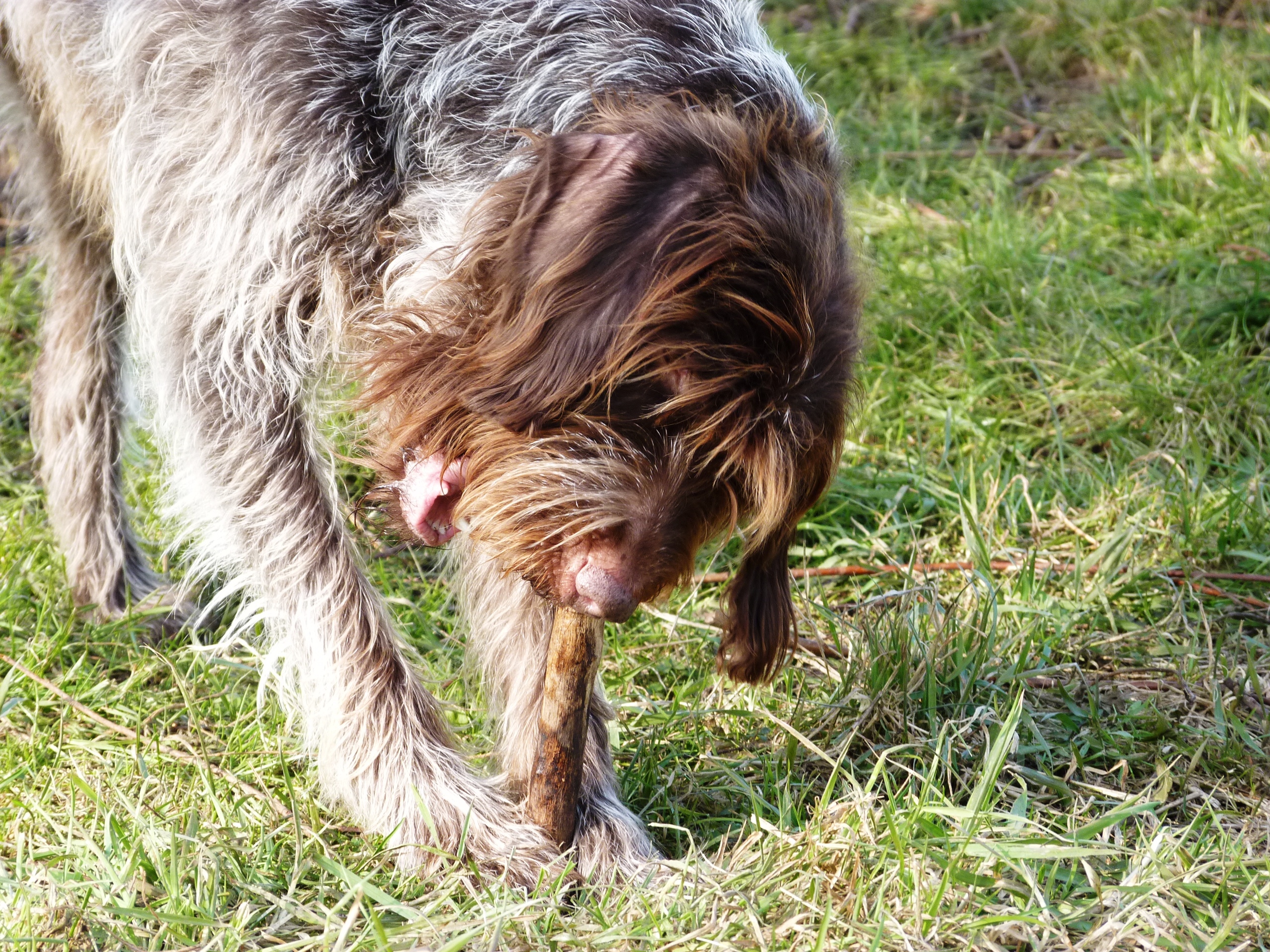 Aafke heeft de houtwal ontdekt en ruik allerlei spannends.