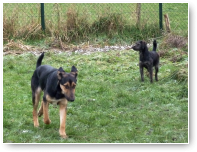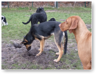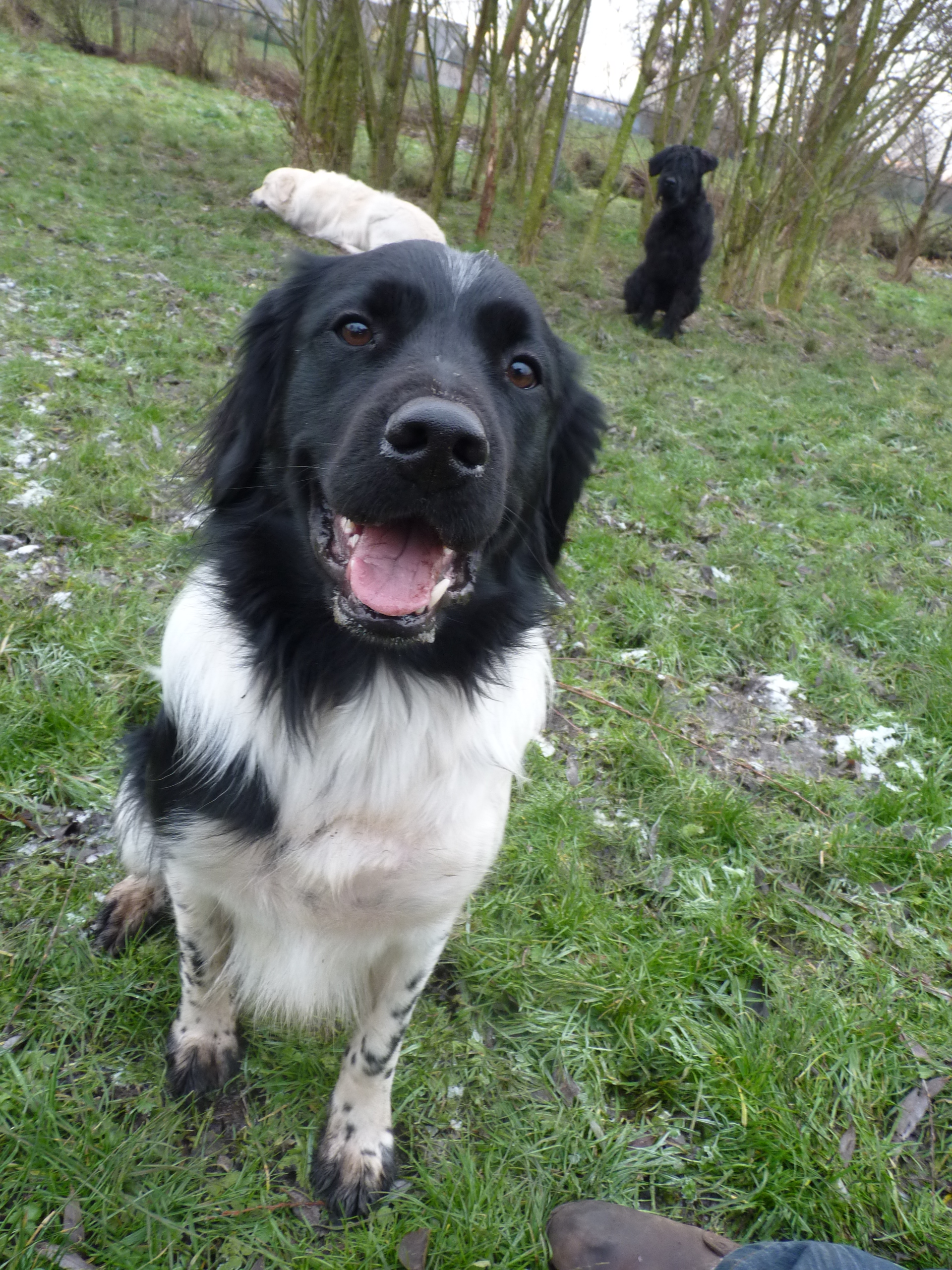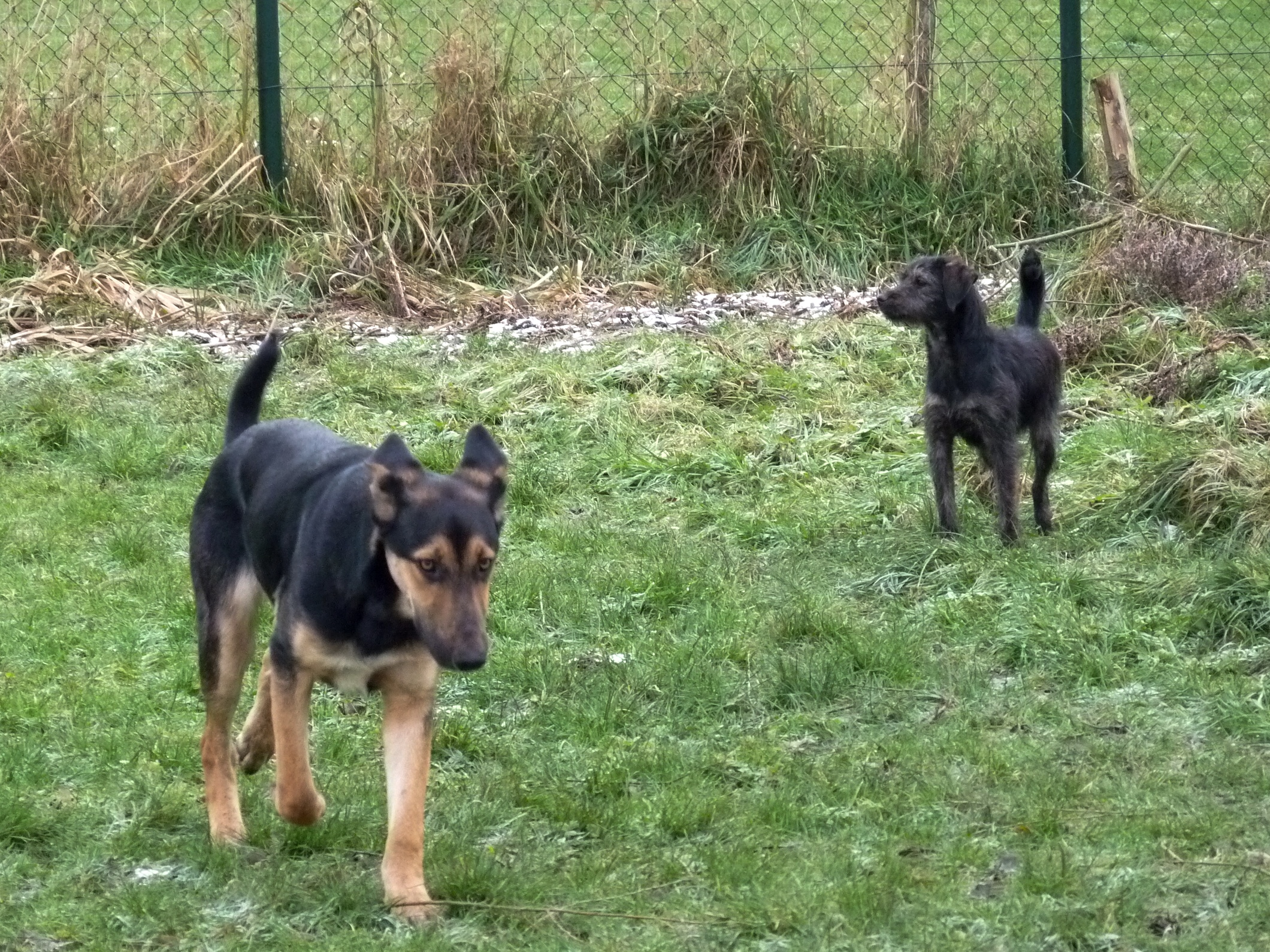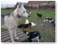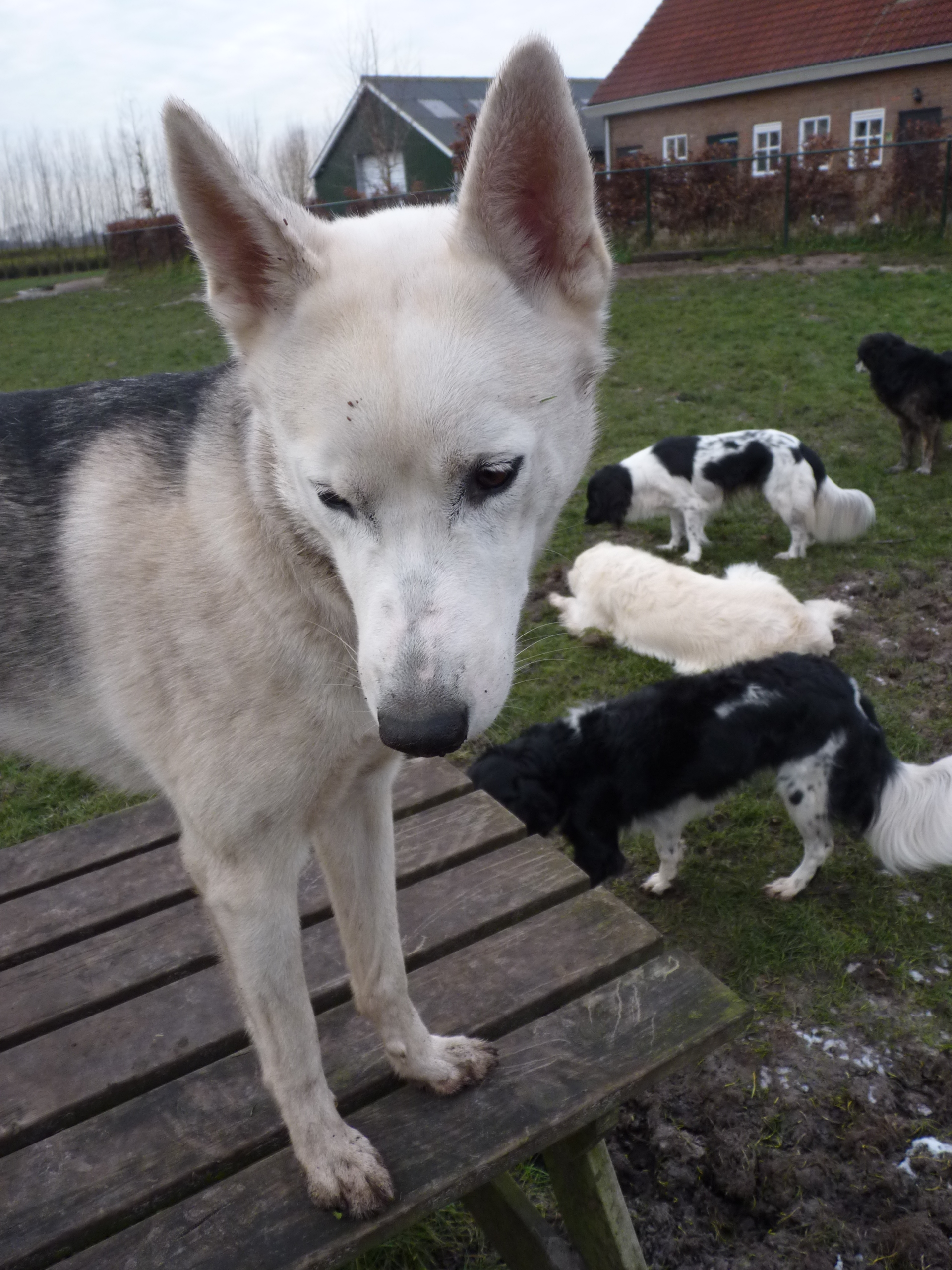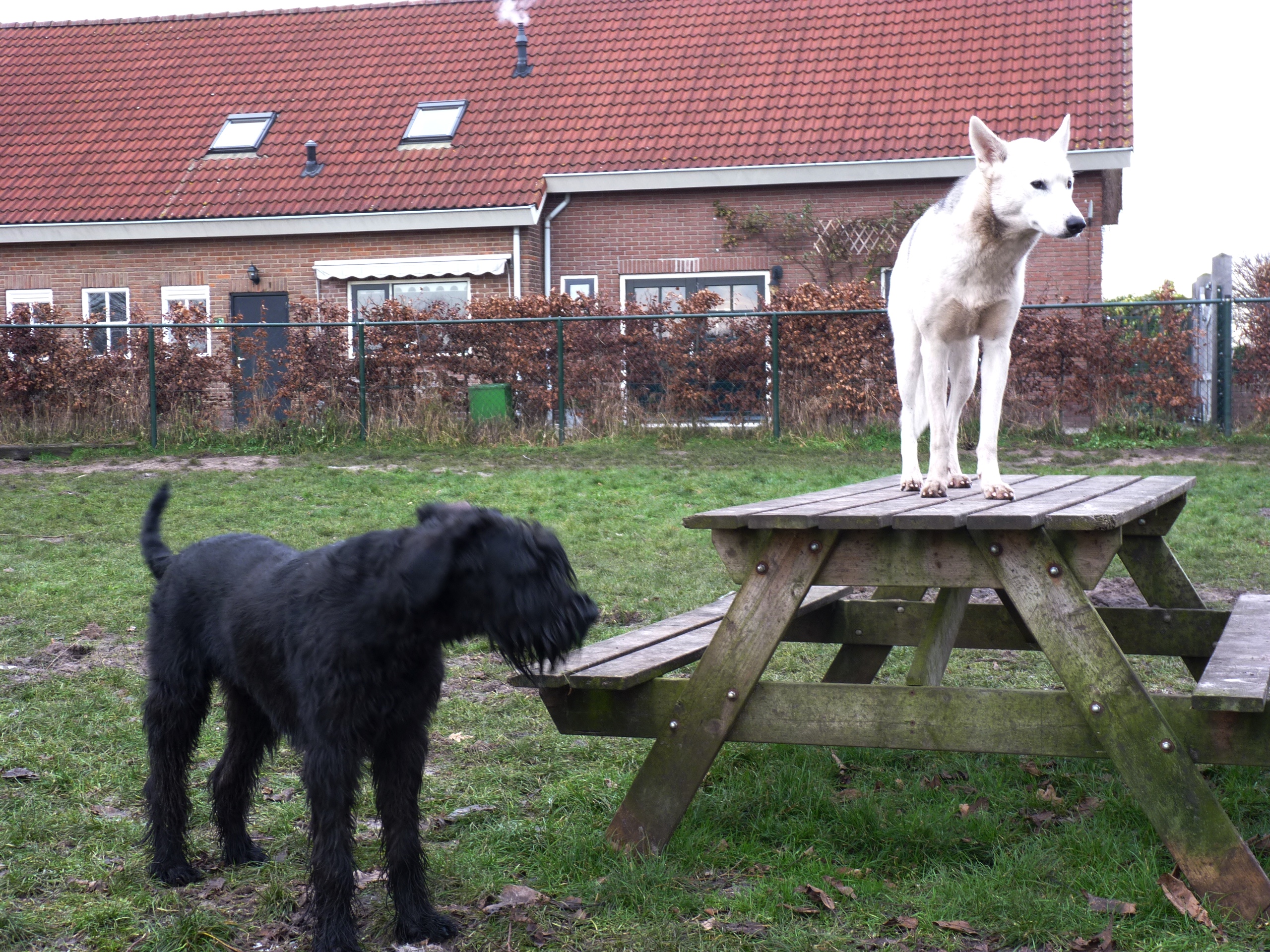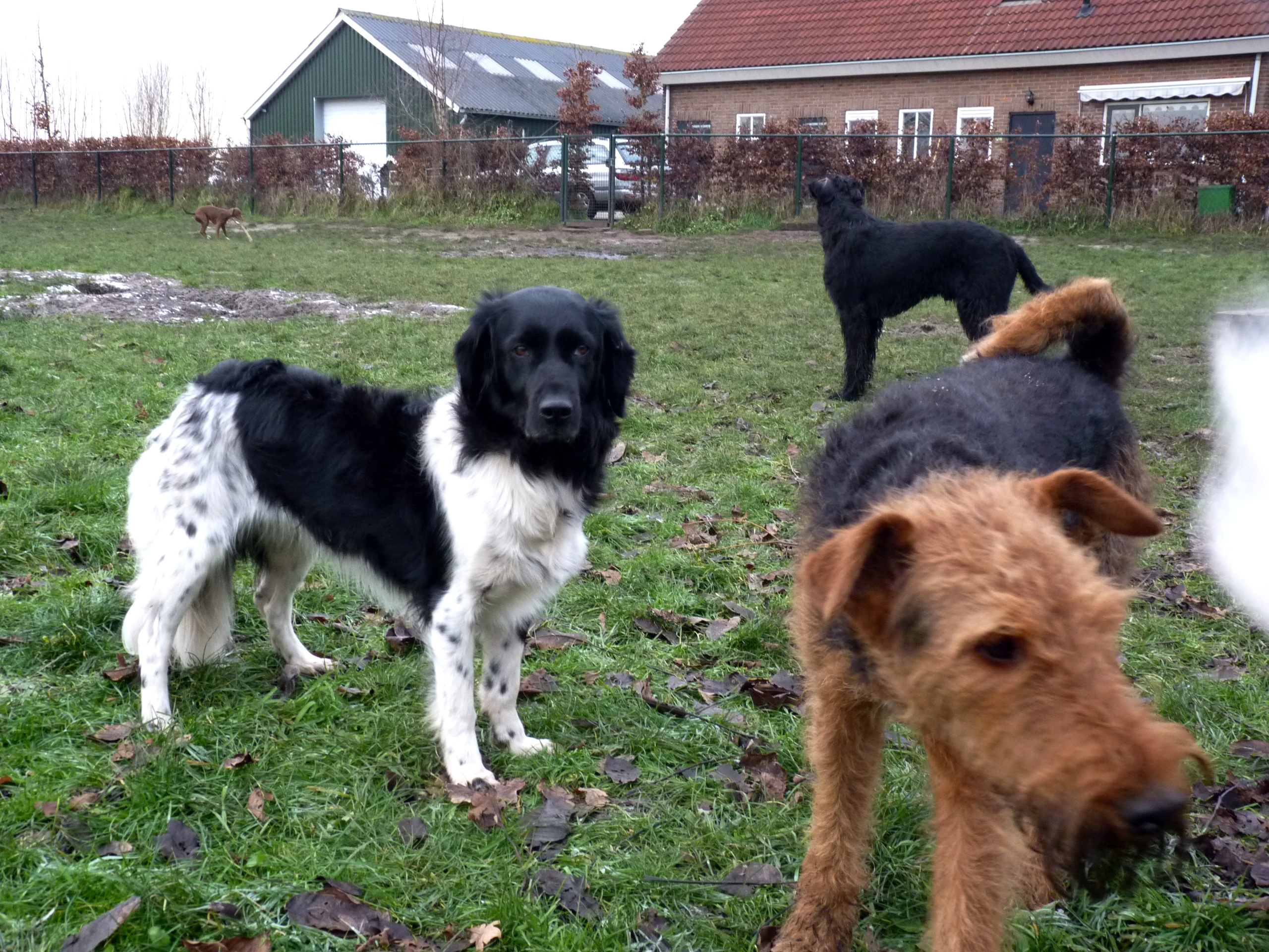 Met Airdale Flip, Riesenschnauzer Biko, Stabij Skip, Labrador James, Husky Luna en Spaanse kruisingen en nieuwkomers Santi en Daisy banjert er een lekkere club schoffies door de wei. Golden Max leeft er helemaal van op, en ook vaste gast Baileys wordt er enthousiast van. Stabijdame Sipke laat zich door niemand gek maken maar hoort er helemaal bij. Joris en Sam, bijna meubilair hier op Syltjer Wâld, vinden het eigenlijk wat aan de koude kant vandaag, maar melden zich toch even in de wei voor de foto's. Ze staan er allemaal op, dus. Kijk maar - klikken op één foto en u kunt bladeren door allemaal.