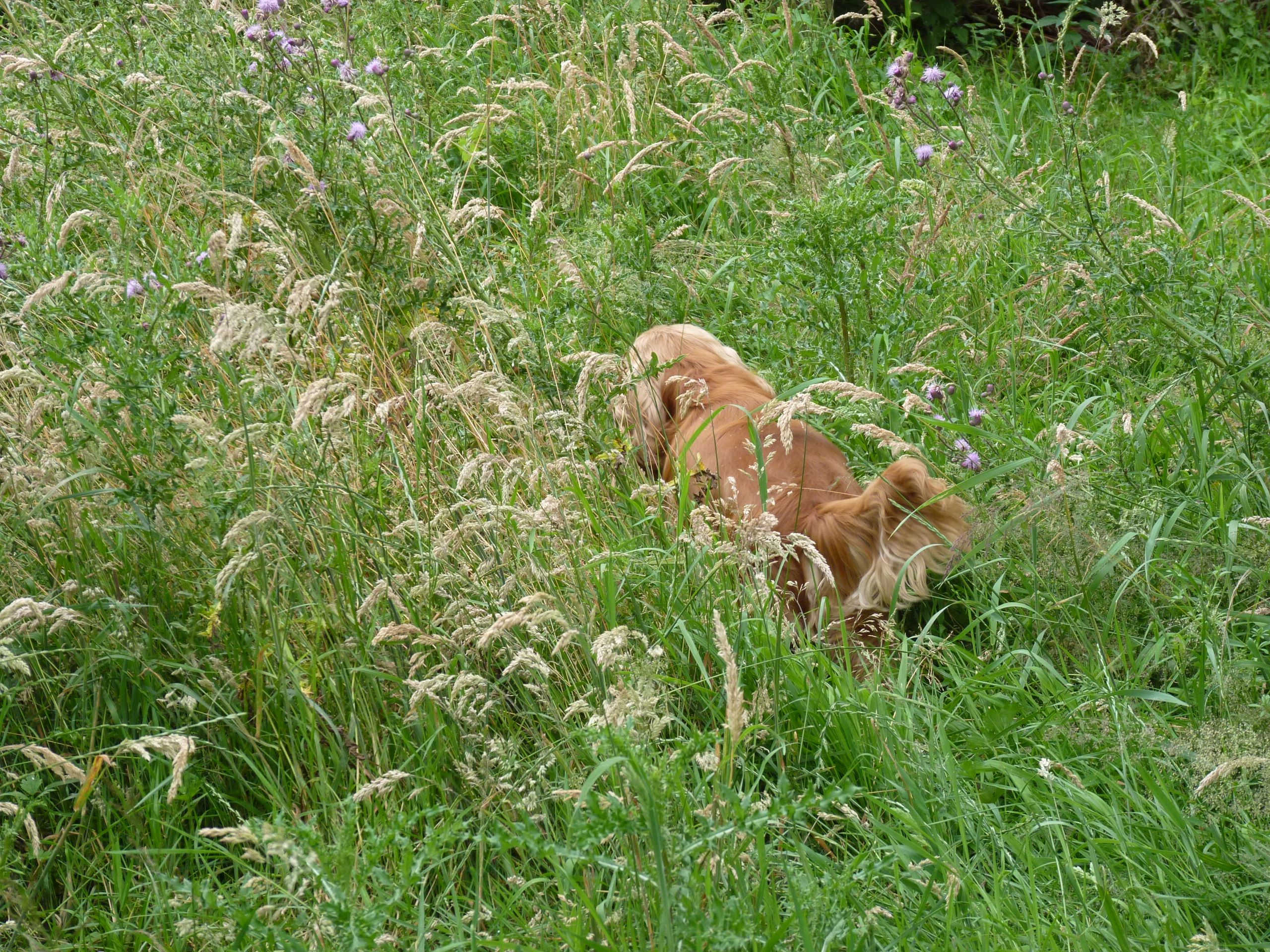 Heidewachtel Bo heeft een heerlijke graspol ontdekt.