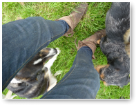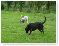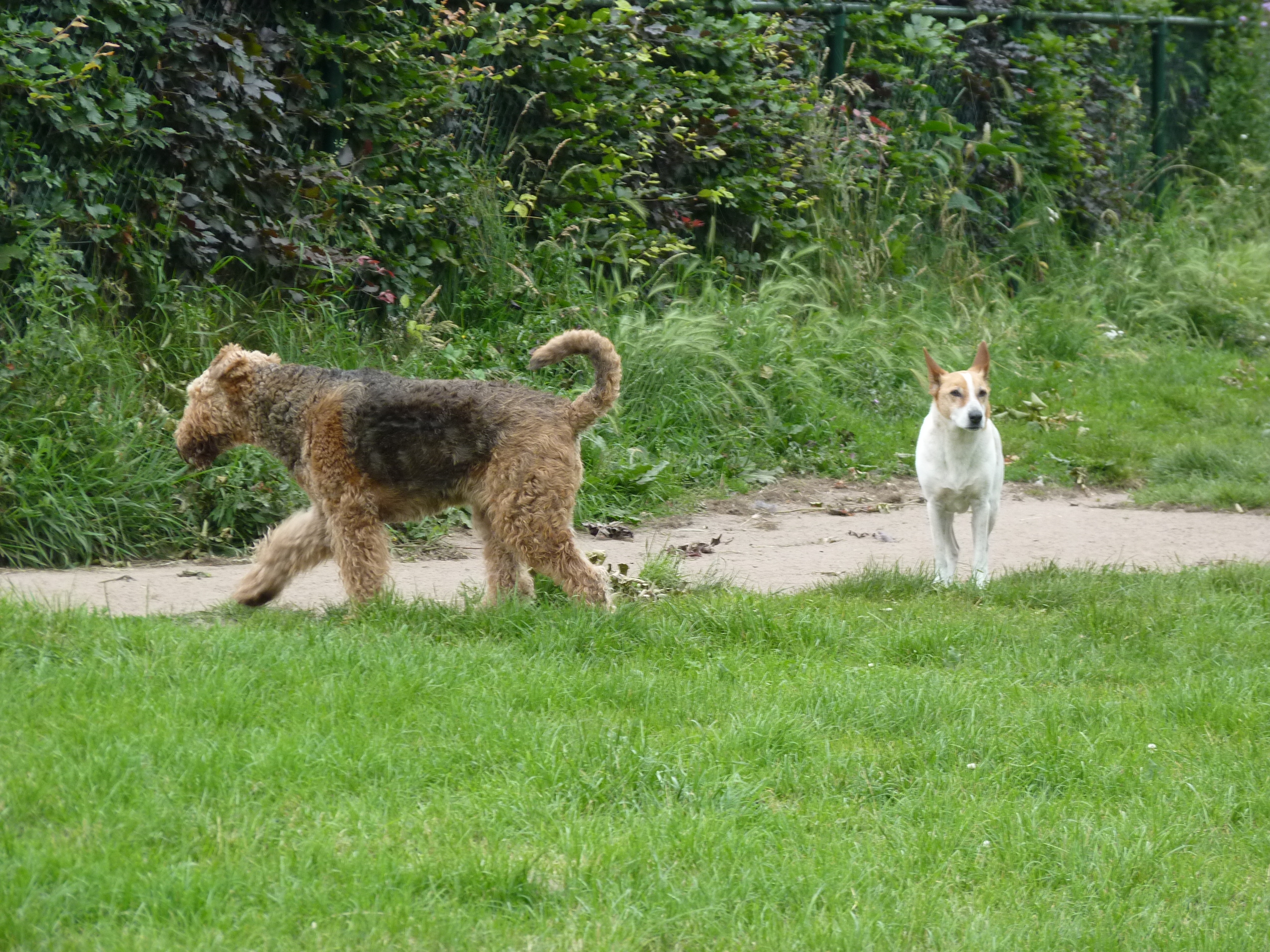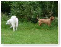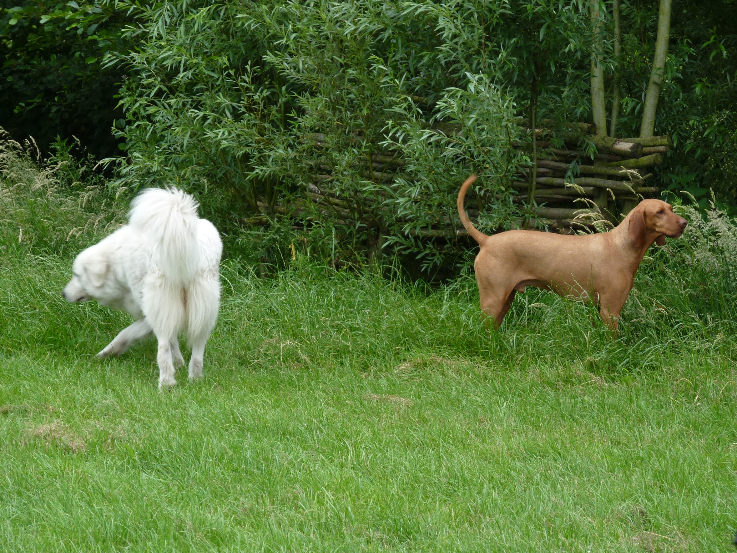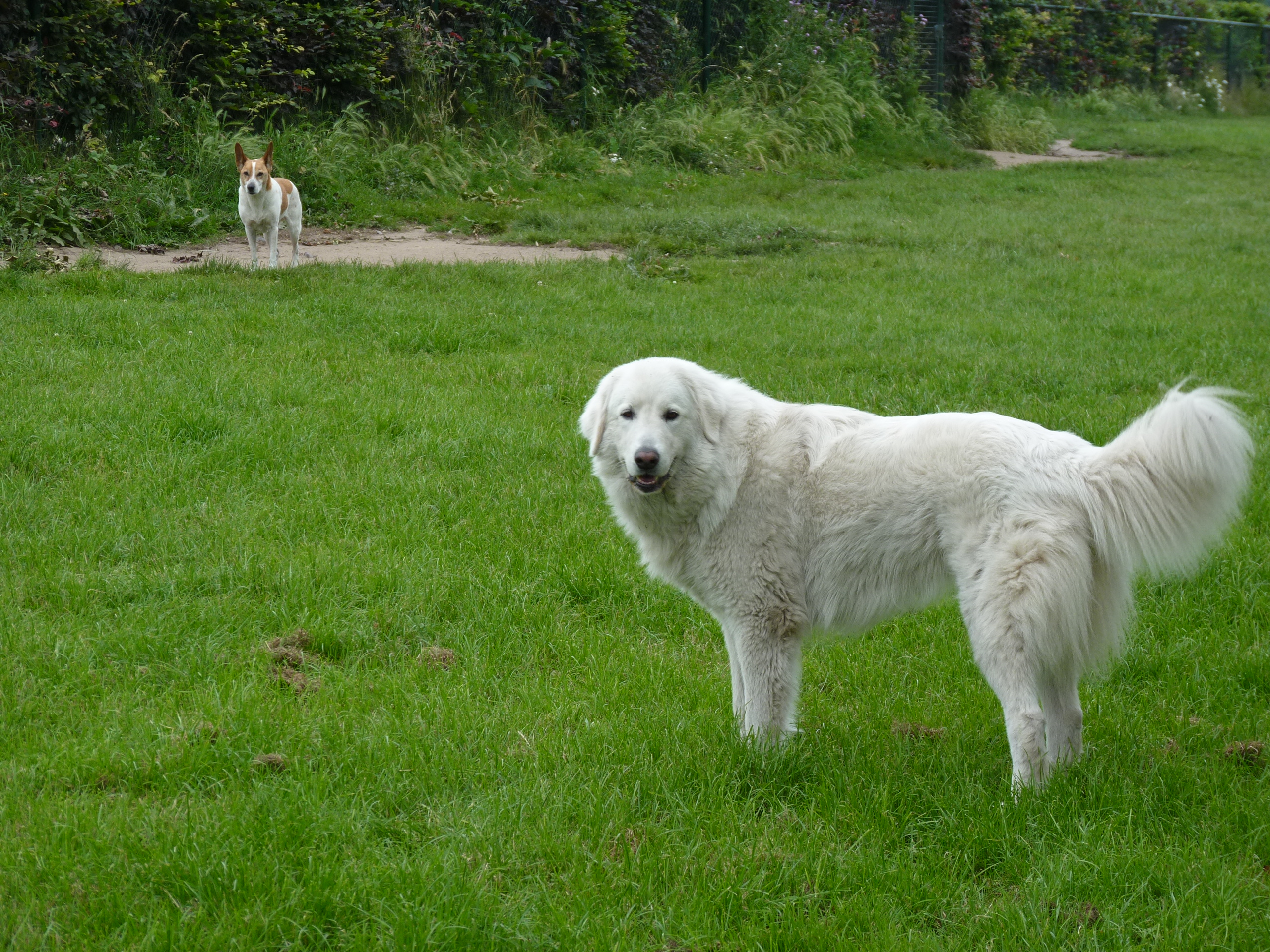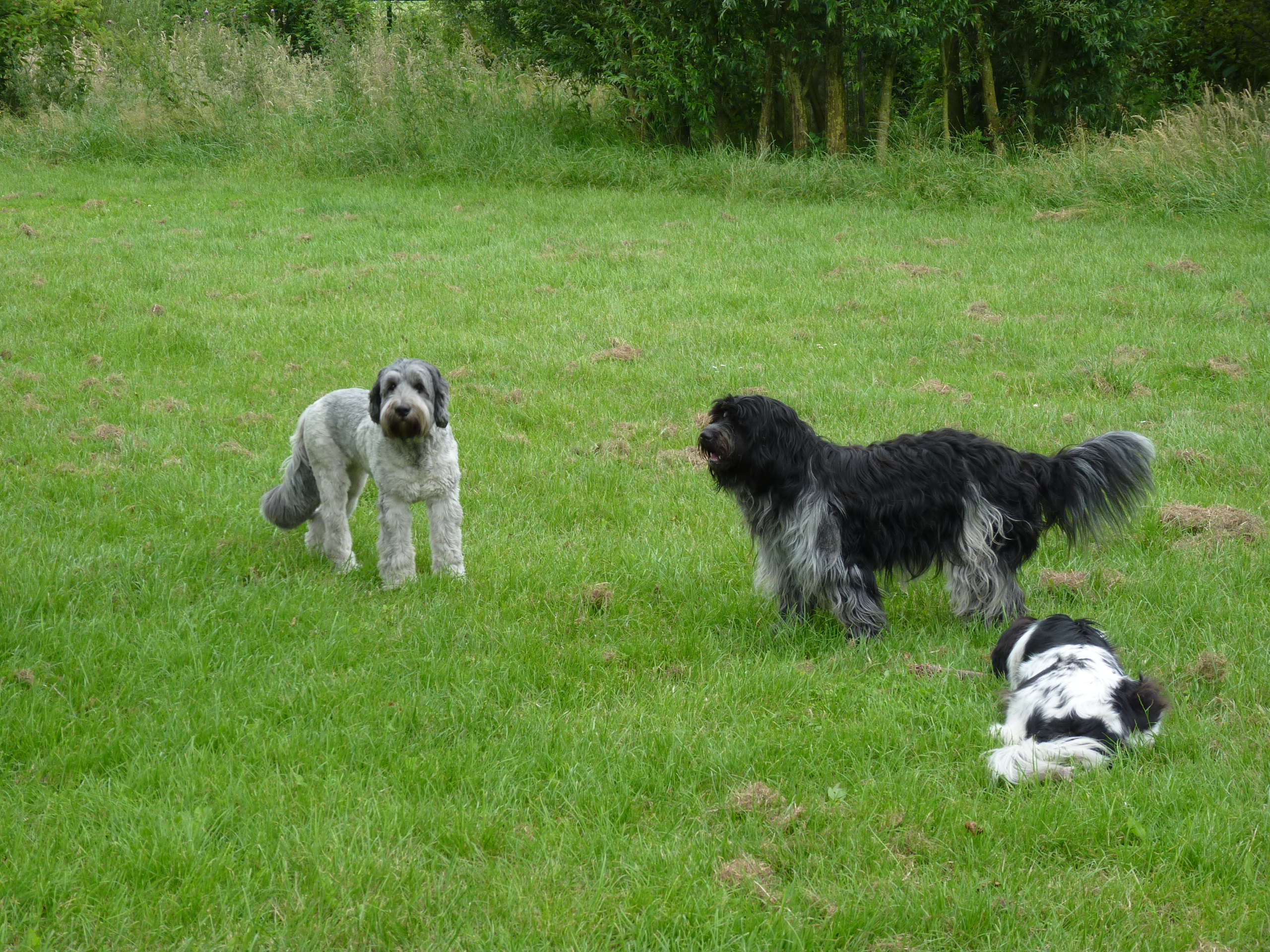 Het is een prachtig, gevarieerd gezelschap dat logeert. Naast de gebruikelijke Labradors en Friese Stabij's lopen er de meest uiteenlopende rassen door elkaar. De kleintjes Boemer, Gijs en Boros hebben elkaar echt gevonden en zoeken elkaar steeds op. New Foundlander Oscar en Gucci Tatrahond zijn de grootsten van de groep. Alles gaat vredig met elkaar om. Er is wel de hele dag leven in de brouwerij maar de Labradors houden de boel wel aan de gang. Helaas ging het vrij snel regenen tijdens het fotograferen dus ik heb nog niet de hele roedel compleet. Ik plaats vast de foto's die ik heb 'gescoord', de rest volgt!