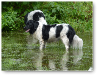 De straten in Nederland staan blank. Een groot gedeelte van de speelweide ook. Na een ochtend met veel stress omdat er onweer onderweg was en dat voelen ze aankomen. Na een uur binnen schuilen konden de klapdeuren weer open. Toen ze de enorme waterplas ontdekten waren ze door het dolle. Inmiddels is de dag voorbij, hebben ze gegeten en liggen ze moe en nog vochtig op de banken bij te komen.