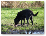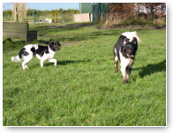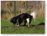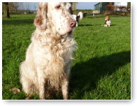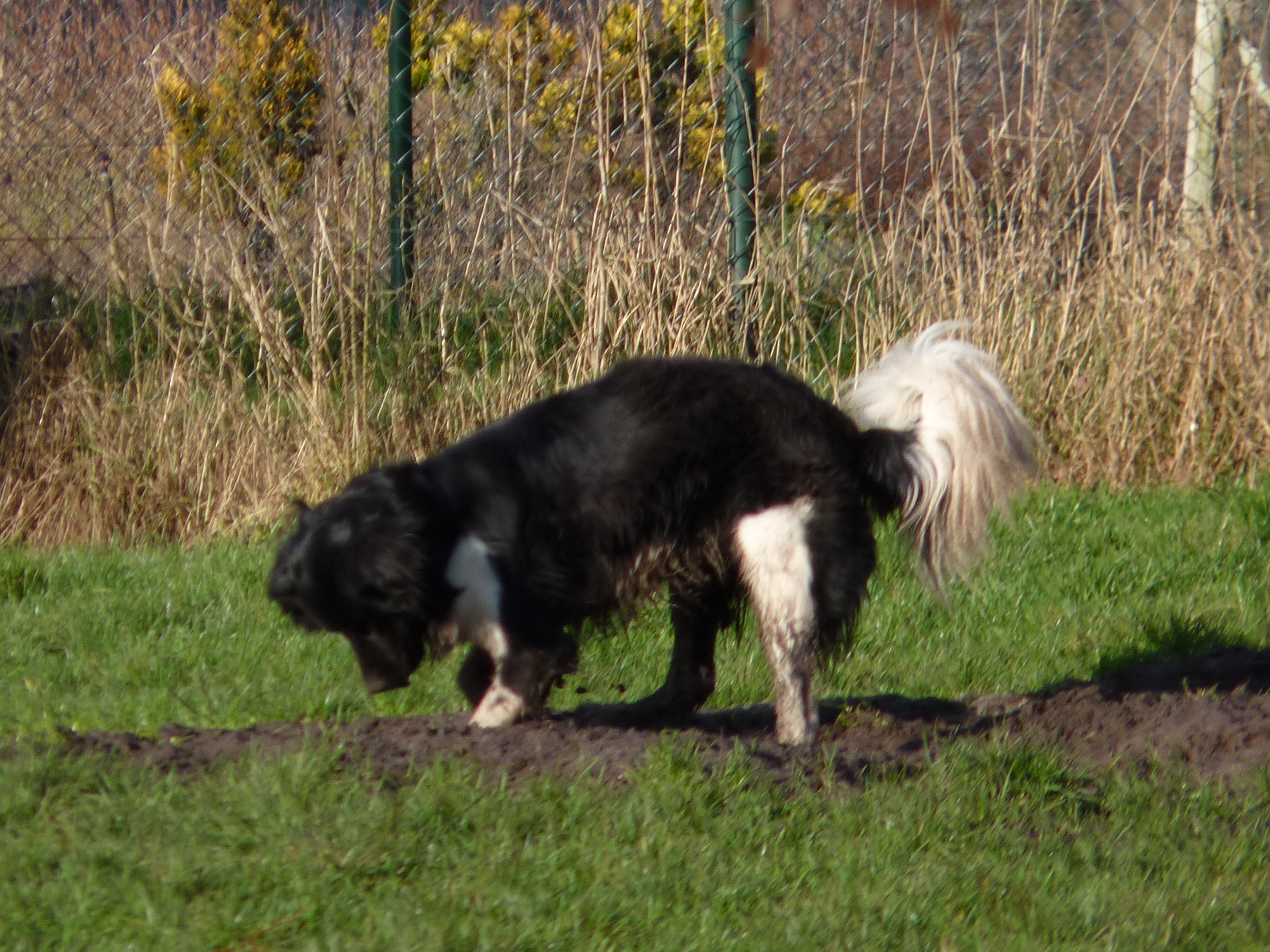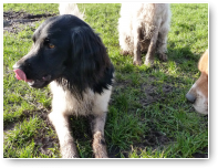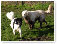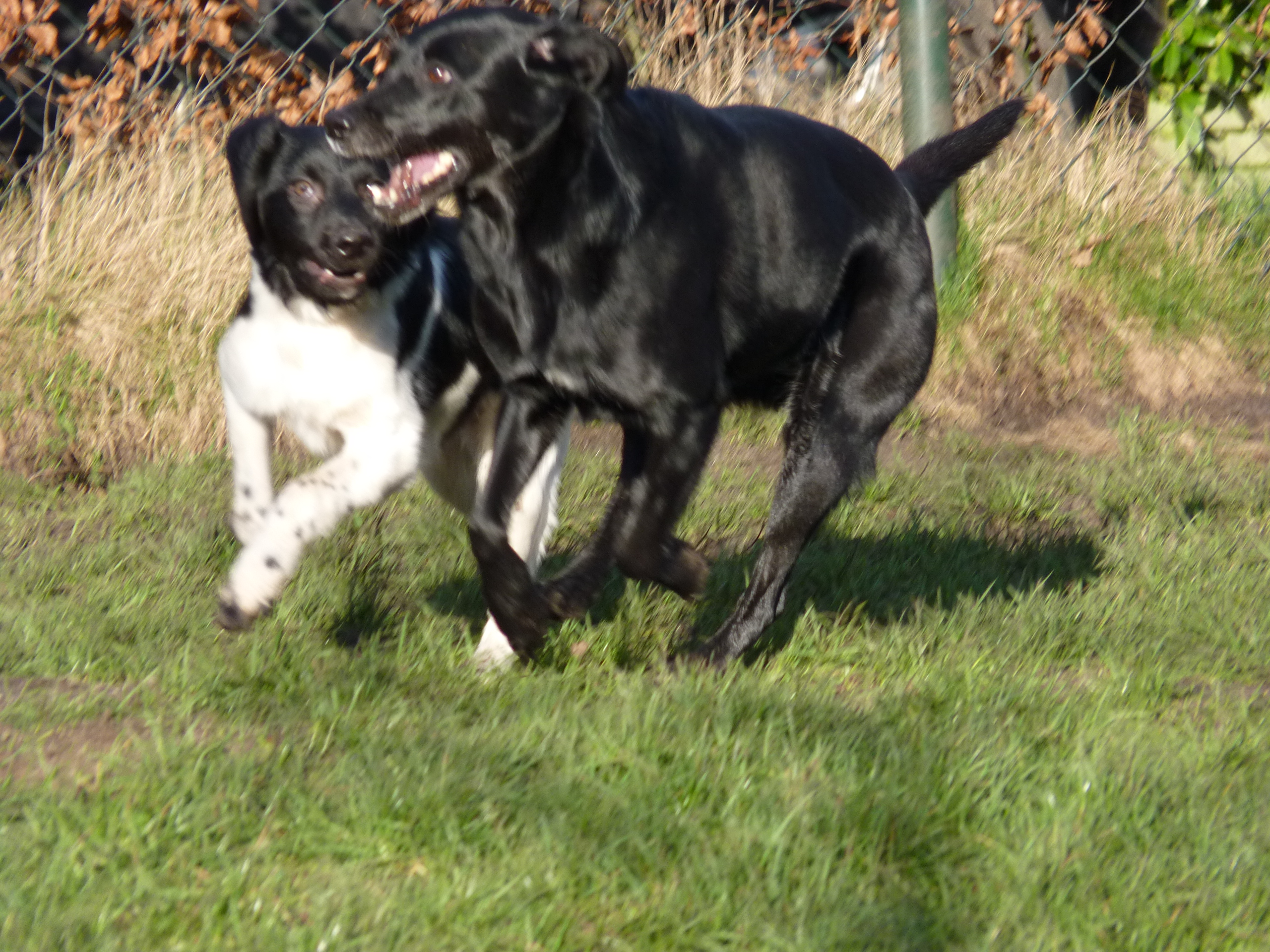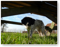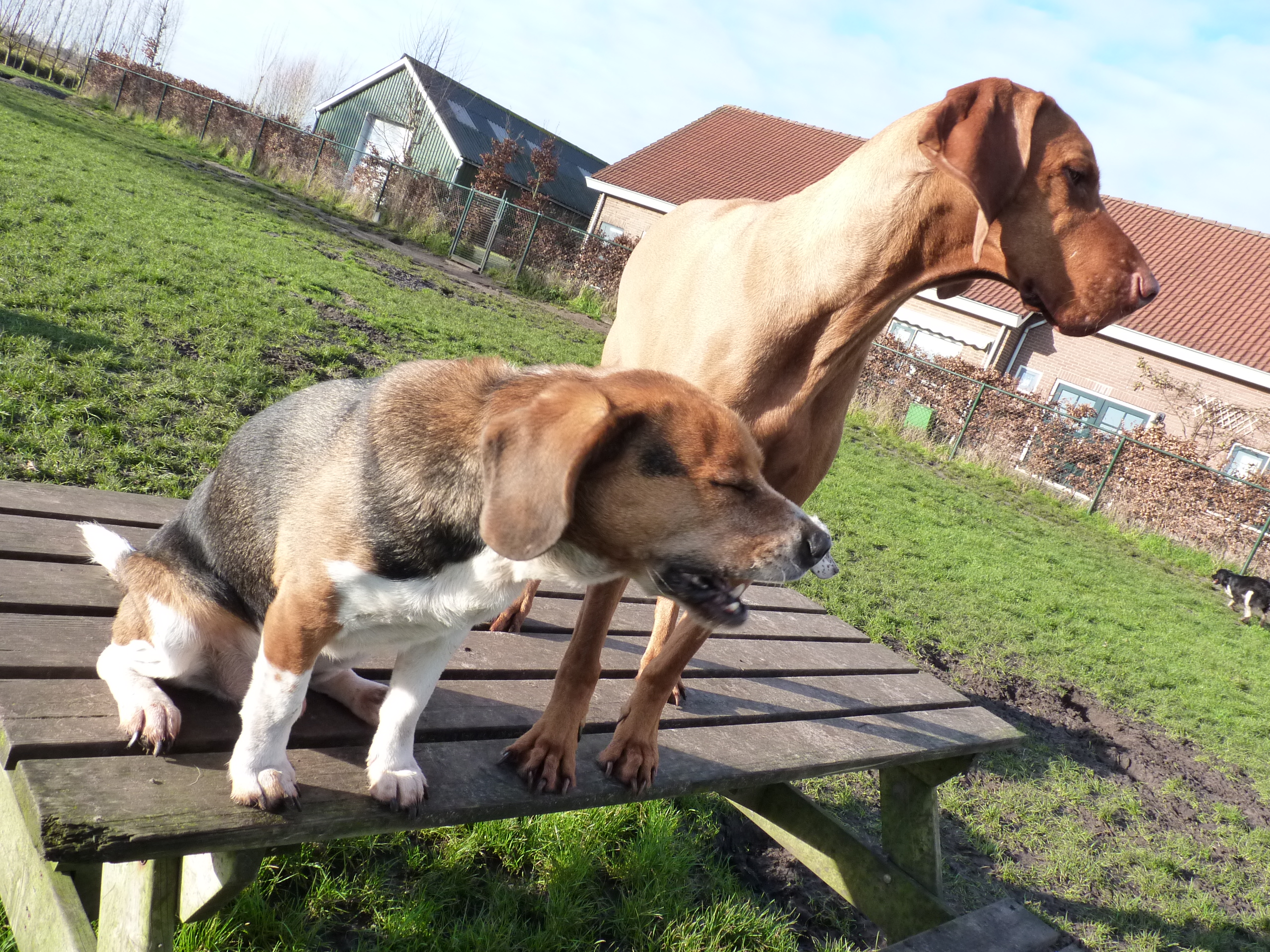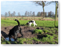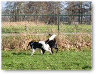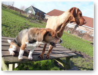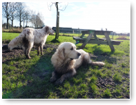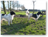Hoog tijd voor een nieuw dagboek. Er schijnt een winterzonnetje, en het kleine clubje honden dat bij ons logeert geniet er van. Kleine Stabij Wytse is hier al een week, en hij begint een beetje aan het eind van z'n Latijn te raken. We laten hem veel slapen, en nemen hem af en toe mee de wei in, tussen de andere honden. Dat vindt hij heerlijk. Het is een leuk, dapper hondje, en hij speelt vrijuit met de grote jongens en meisjes. Het is ook niet niks voor zo'n kereltje, hij heeft een boel meegemaakt en geleerd in dat weekje. Engelse Setter Jora is in haar element. Ze maakt flink wat kilometers op een dag, en leeft zich helemaal uit - dat wordt schrobben als ze straks thuiskomt. Senna is een kruising Labrador/Entlebucher, ook al zo'n levensgenieter. Golden Retriever Bink is hier voor het eerst, maar hij heeft het al helemaal door en dat zie je aan hem. Hij doet niet onder voor ervaren Stabij's als Sietse, maffe Donny en good old Bob, of vaste dagklanten Joris, Sam en Beagle Guus. Stabijdame Beike, tenslotte, scharrelt overal tussendoor, staat regelmatig even heel lief in de verte te kijken en laat zich graag aanhalen. Heerlijk hoor, zo'n gemoedelijk roedeltje, zonnetje er bij, wat een naar leven hebben we toch